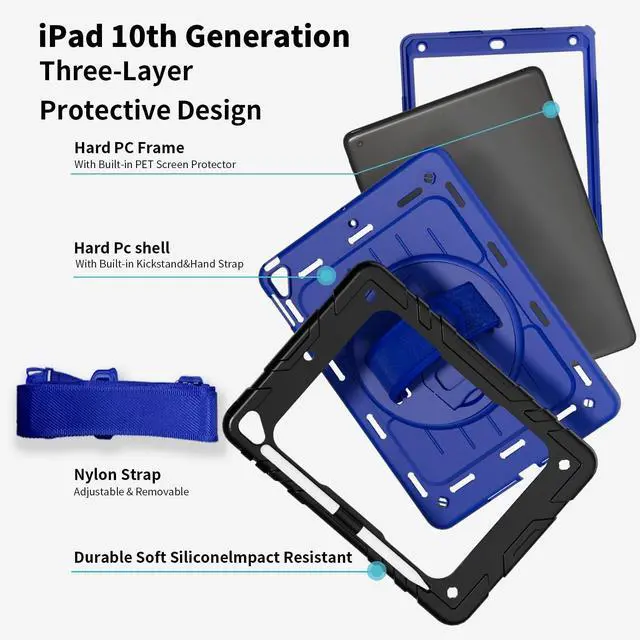 User-FriendlyDetachable & adjustable shoulder strap attach the strap to any two corner holes of this iPad 10.2 Case.Carry your iPad conveniently wherev