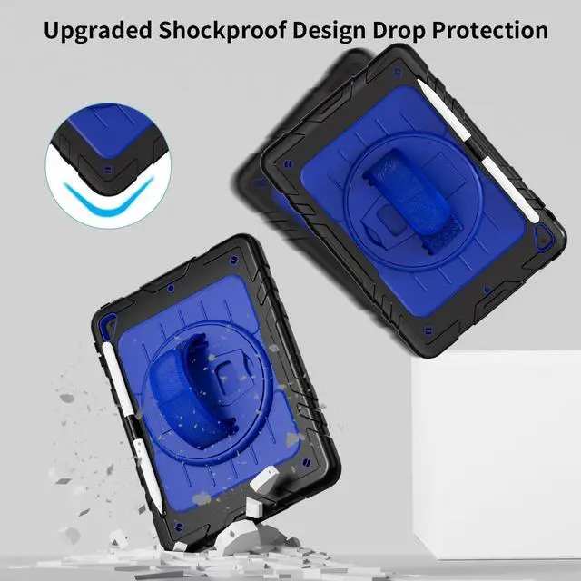 360Rotating Kickstand & Hand StrapRotatable kickstand easily support your iPad in multi-angle viewing.Moreover,the soft hand strap allows you to hold your iPad firmly and prevent accidental drops.Convenient for studying, gaming, watching video, etc.