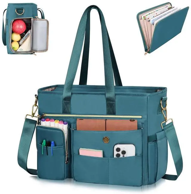 ESTARER Teacher Tote Bag for Women 2Pcs,15.6 Inch Laptop Work Bag Computer bag w/Expandable File Folder, Large Water-Resistant Messenger Handbags w/Insulated Pocket for Office/Travel/College, Teal
