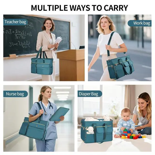 • Large Capacity & All In 1: Our teacher tote bag equipped with 12 pockets, which can hold all your work necessities in an organized way. Fits up to 15.6 inches laptop, water bottles, umbrellas, and cosmetic products. Teacher Bag Dimensions: 16.9'' x 11.8'' x 5.9'', Weight; 2.64 lbs, spacious enough for carring laptop, files & food in one bag; Note: Top zipper does not close on the end.