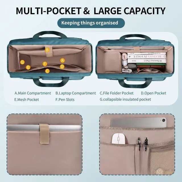 • Multi-Compartments Design: Work tote bag perfectly designed with various practical pockets meeting all your needs