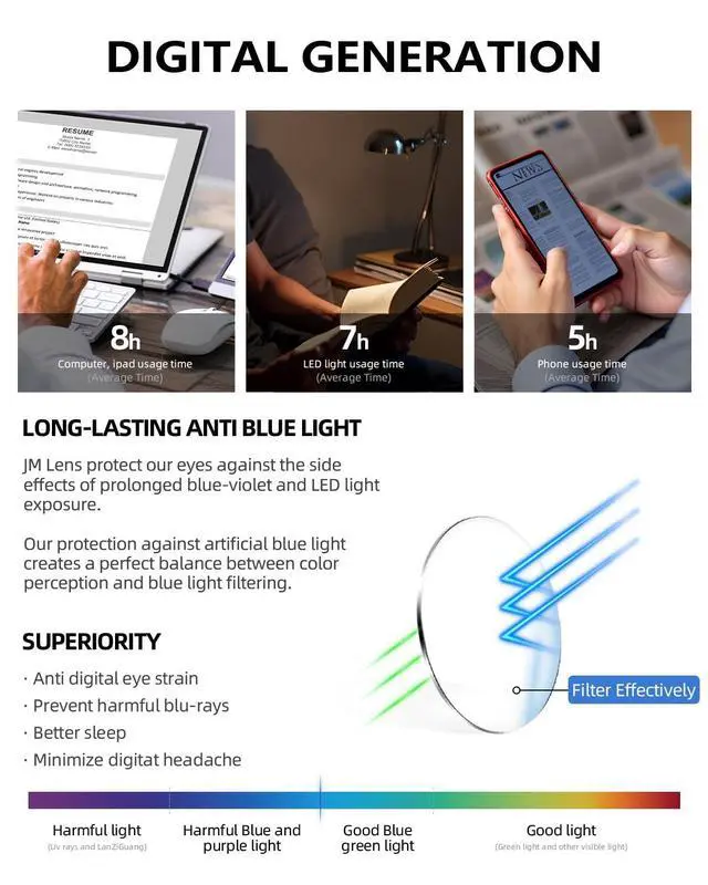 ^^ Protect Your EyesJM rectangular blue light blocking eyeglasses can filter harmful blue light when you watch TV, look at computer, tablet, smartphone or other electronic devices. It can reduce eyestrain, prevent eye dry, minimize headache and make you sleep better.