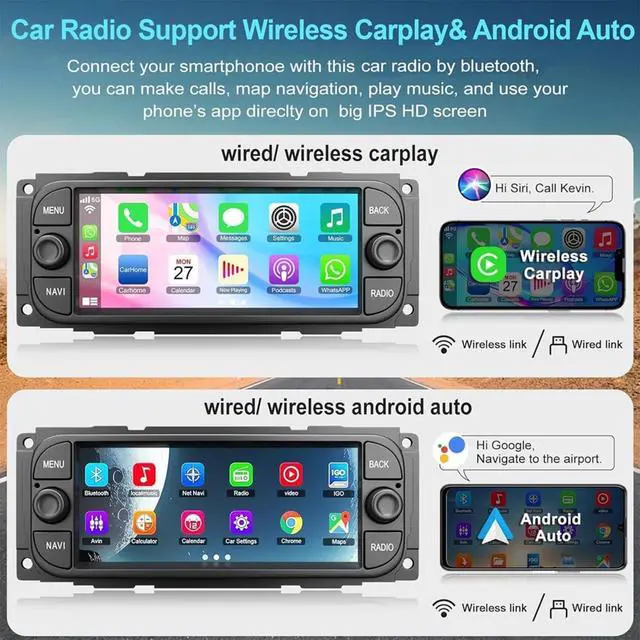 6.86 inch IPS capacitive touch screen with high resolution provides you more vivid and clearer playback. ^^ Wireless with Carplay & Android Auto & Mirror Link Connecting your smart phone to the screen for Jeep wrangler radio via USB data cable or Bluetooth to reach to your phones apps and features like Google Maps, phone address book, notification, music. Waking up the voice control to free your hands. Support Mirror Link, connecting to the radio via USB or Wifi, you can sync the image of your mobile phone on 9 inch touch screen.