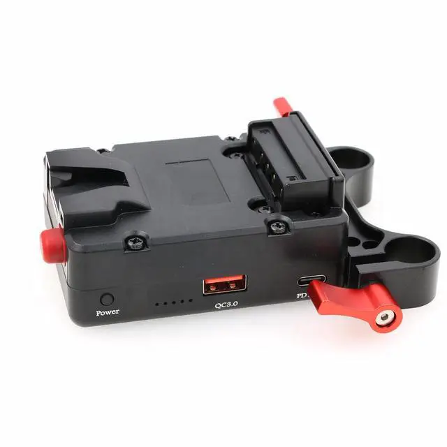 Mini battery plate features multiple DC outputs (8V, 12V, 14.8, 16.8V, and a D-Tap)QC 3.0