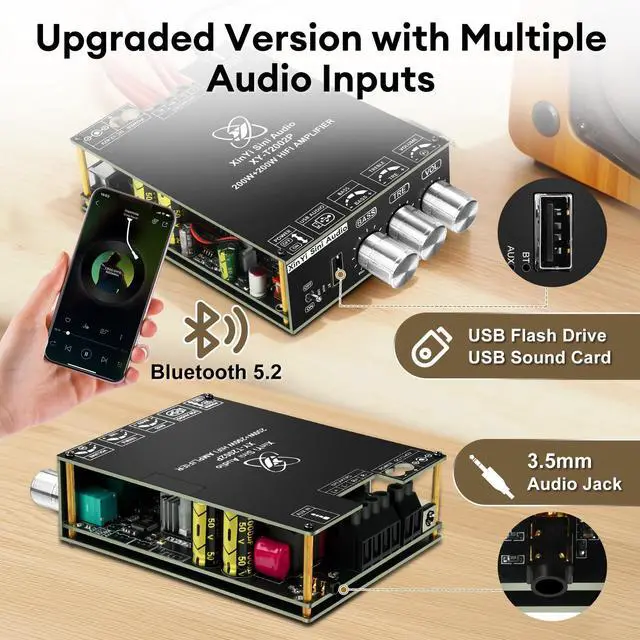 ^^ [3 Audio Inputs]The Bluetooth Amplifier Module has 3 audio inputs - Bluetooth, AUX and USB flash drive. Connect to your device wirelessly via Bluetooth, or connect to your TV, computer or audio device via the AUX input. USB flash drive and USB sound card inputs are also supported for easy playback of music files or computer audio. With a variety of input options, you can easily choose the input that best suits your needs for a high-quality audio experience. ^^ [Wide Applications] The Daakro XY-T2002P Bluetooth Amplifier Board is a high-performance audio device widely used in DIY Bluetooth audio and other fields.