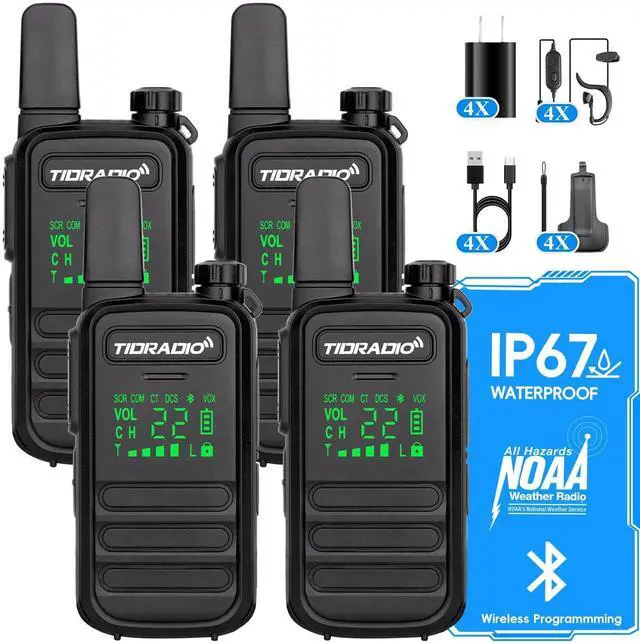 ALL You Need Are Included FRS License Free Walkie Talkies 4 Pack/ 4X Earpiece with Mic/ 4X 1000mAh Batteries/ 4X USB Charger with Type C Cable/ 4X Back Case with Clip/ 2X User Manual/ 4X Lanyard (No charging base station) --FCC: 2A4FBM11 ^^ IP67 Walkie Talkies Durable and splash-proof, M11 walkie-talkies are perfect for outdoor use. They're IP67 rated, meaning they can handle dust and water splashes. It is an indispensable good helper on your road to career success. it is equally excellent for household use or outdoor activities ^^ Easy Programming Program your M11 two way radios via Bluetooth from your phone (ODmaster APP) or PC (ODmaster Web). It also supports offline programming and traditional 2-pin programming for flexibility. (Please email us to get the Programming Software (CPS), or