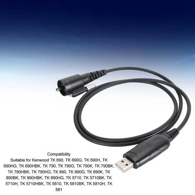 USBApplication: for Kenwood TK 690, TK 690G, TK 690H, TK 690HG, TK 690HBK, TK 790, TK 790G, TK 790K, TK 790BK, TK 790HBK, TK 790HG, TK 890, TK 890G, TK 890K, TK 890BK, TK 890HBK, TK 890HG, TK 5710, TK 5710BK, TK 5710H, TK 5710HBK, TK 5810, TK 5810BK, TK 5810H, TK 581Package List1 x Programming Cable