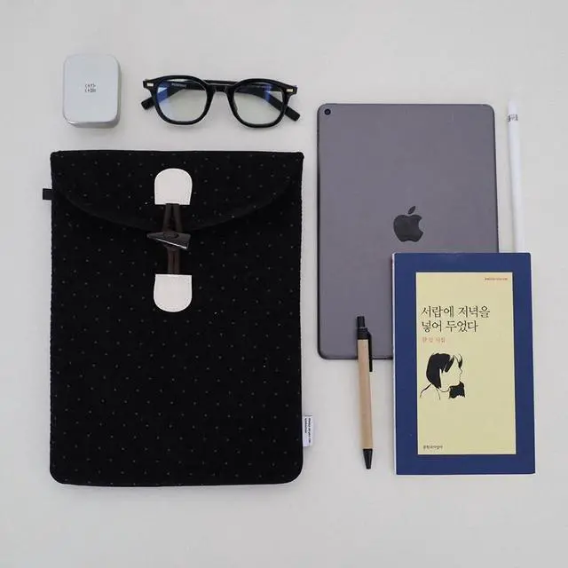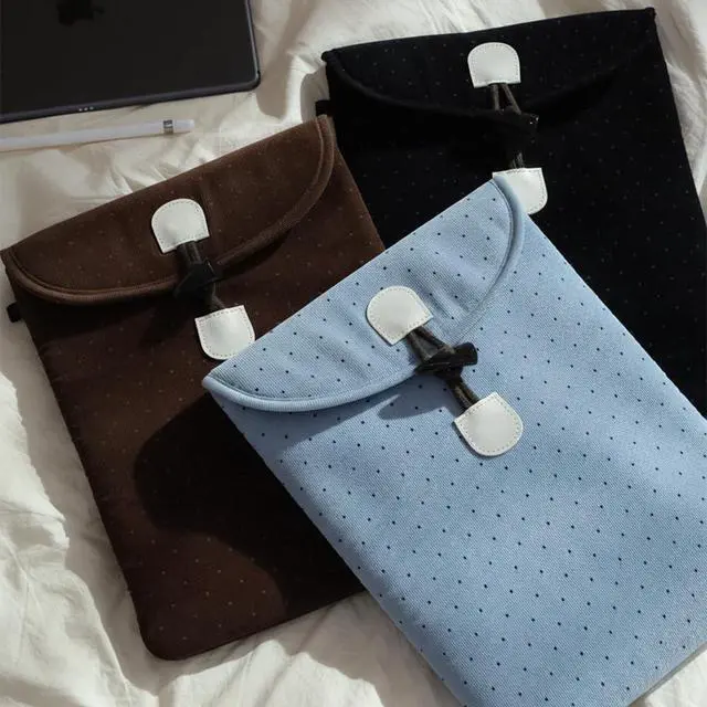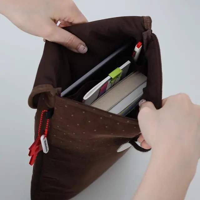 [Soft Corduroy with Gentle Dots] Made from finely woven corduroy with a subtle dotted pattern, offering a warm, soft texture that feels calm and comforting in your hands ^^ [Cozy Toggle Button Closure] Finished with a charming toggle button that opens and closes easily while adding a cozy, vintage-inspired accent to your daily carry ^^ [Cushioned Interior with Divider Pocket] Light padding and a smooth inner lining help keep tablets, laptops, or books neatly stored, with a divider pocket for small essentials ^^ [Thoughtful Everyday Details] Includes a side loop for attaching keyrings or charms, plus a signature Kimhachan woven label for a quiet brand touch ^^ [Made in Korea with Care] Designed and produced in Korea by skilled artisans, focusing on clean stitching, durable construction, and long-lasting quality