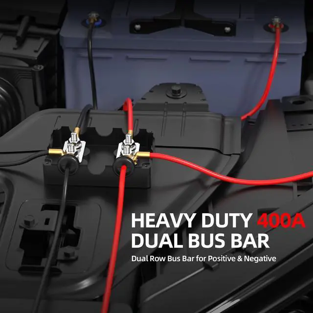 Dual Bus Bar: Positive and Negative (Ground) 2 in 1 Bus Bar makes your wiring more neat and more save your wiring space. The 400A bus bar terminal block features 6mm(1/4") thicker copper bus bar plate with stainless steel studs and nuts ^^ 5/16"