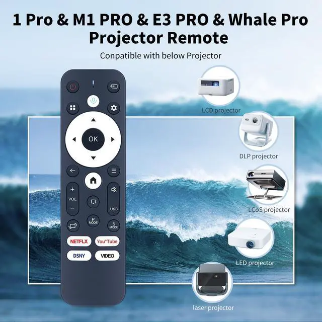 Compatibility WDZP New Projector Remote Control Replacement for ZCGIOBN, WANBO Mozart 1 Pro M1 PRO, ETOE E3 PRO Whale Pro Projectors ^^ Easy Pairing 1)Press "POWER" key to turn on the TV. 2)Press "Left" and "Home" together for 3-5 seconds, theindicatorlight flashes and enters the pairing statusafter the pairingis successful, theindicatorlight will go out. ^^ Remote DistanceInfrared technology emits a strong signal at 180 degrees and within 12 meters (40 feet); ^^ ABS materialThis smart remote made of high quality ABS material to make this smart remote more durable. This replacement remote only comes with 0.10 kg ( 0.22 lb.