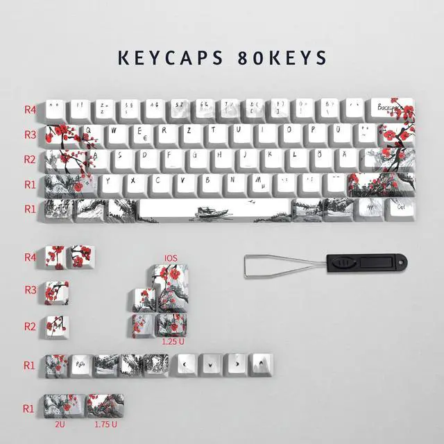 Thermal Sublimation ProcessCompatible with: GK68 RK68 Set Keyboard, like Cherry MX Switches Mechanical Gaming Keyboard and Outemu, Kailh and Gateron switches and fit most 61/64/68/75 standard ISO/ANSI Germany Layout keyboard. Package- Basic Kit 80 Keys- Keycap Puller x 1