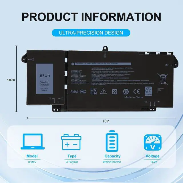 Part Number: 7FMXV 727CG 0727CG CN-0TN2GY TN2GY 9JM71 4M1JN 1PP63 HDGJ8 MHR4G CN-0727CG 0TN2GY ^^ SAFETY & CERTIFICATION Made with high-quality materials and equipped with short-circuit, over-voltage, over-current, and over-discharge protection. Fully tested and compliant with CE FCC RoHS standards to ensure long-term safety and reliability. ^^ WHY CHOOSE US We export worldwide with national certifications. Our professional engineer team provides installation guidance, and every battery comes with a 12-month warranty and reliable after-sales support.
