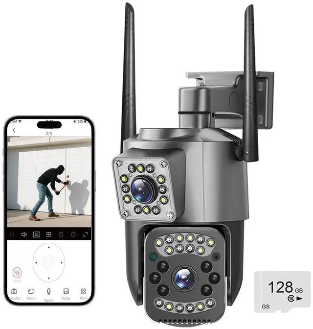 Two-Way Voice Communication: The dual-lens surveillance camera features a built-in, highly sensitive microphone and speaker, supporting two-way voice communication. This allows you to communicate with anyone in the surveillance area in real time through the mobile app. Whether you're communicating with visitors, alerting family members, or deterring suspicious individuals, remote communication is as convenient as face-to-face conversation.