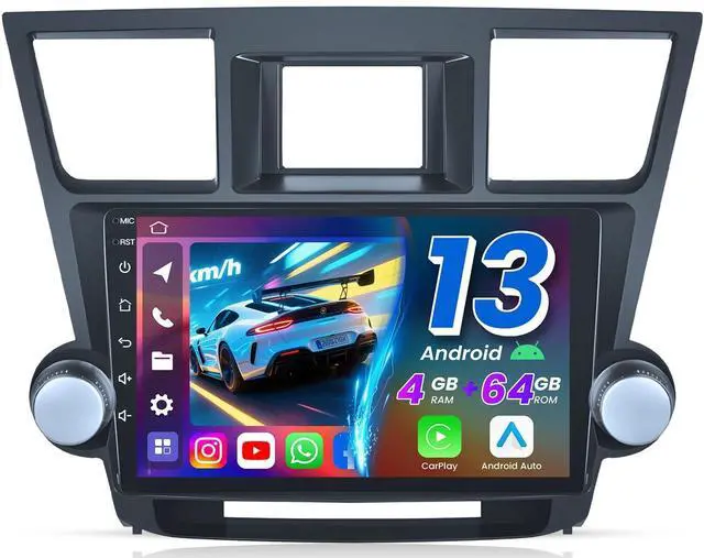 Fitment & SupportCompatible with Toyota Highlander (2008, 2009, 2010, 2011, 2012) 10.2 -inch replacement car radio. Please check your vehicle model/year/center console shape. Includes all necessary Toyota Highlander wiring harnesses and dashboard kit for easy installation. Jingelsye offers professional technical support. (Lifetime after-sales support) We provide 24/7 online pre-sales and after-sales service. ^^ 5G Wireless CarPlay & Android AutoUpgraded Android 13 car stereo supports wireless/wired Apple CarPlay and Android Auto, working with Siri or Google Assistant to enable hands-free calling, music playback, map navigation, voice control, radio supports iOS and Android phone mirroring, allowing you to sync your phone screen to the radio display.