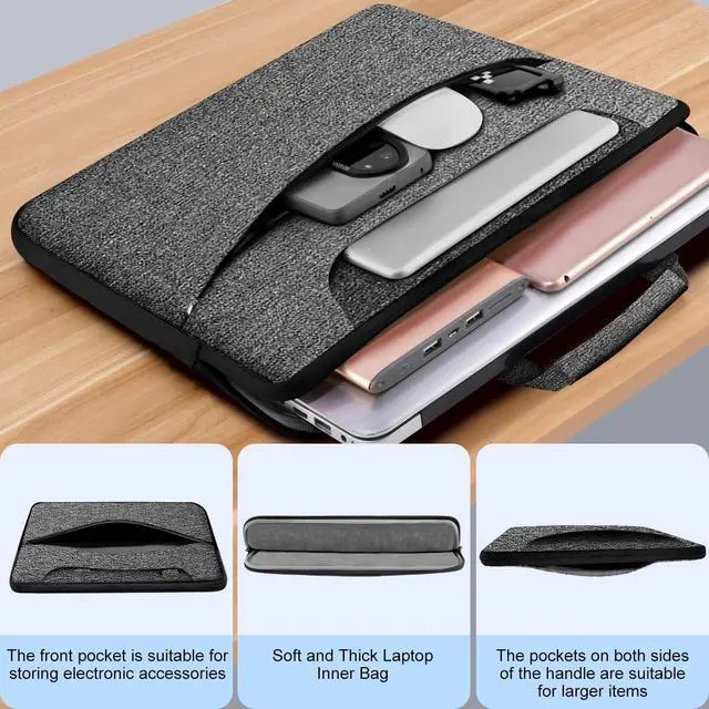 • Dimensions & Material: The laptop shoulder bag 16 inch case internal dimension is: 15 x 10.6 x 0.8 inches (L x W x H), the laptop briefcase with premium water repellent fabric and handle and adjustable strap