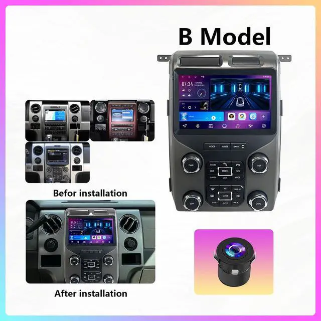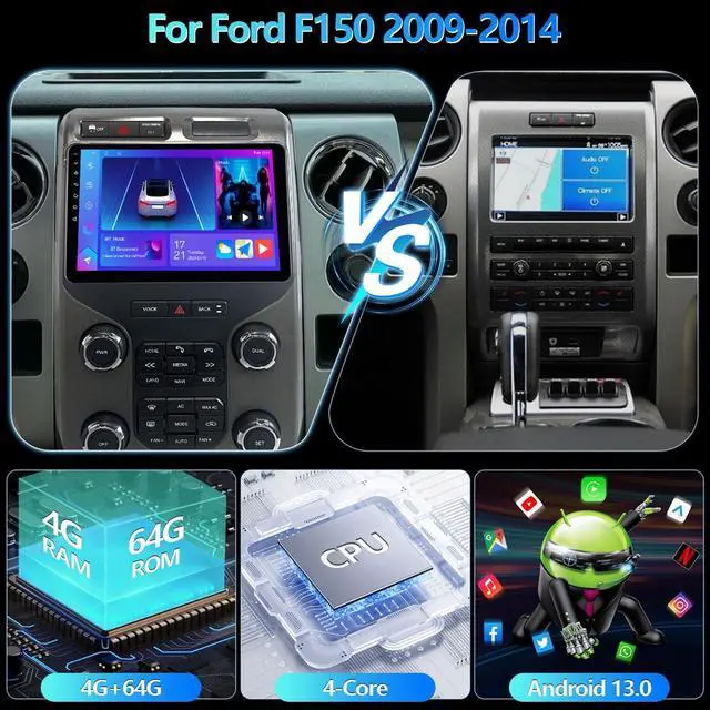 Transform your Ford F150 2009-2014 with this advanced 9.7 -inch Android 13 car stereo system featuring a high-resolution capacitive LCD touchscreen (1024 x 768) for intuitive control of navigation, music, and vehicle settings. Powered by a quad-core processor with 4GB RAM and 64GB storage, this dashboard-mounted system delivers smooth performance for all your multimedia needs. Built-in WiFi enables real-time GPS navigation with Google Maps, online radio streaming, and access to compatible Android applications. Bluetooth connectivity provides hands-free calling and wireless audio streaming with digital audio output for superior sound quality. Specifically designed for Ford F150 models from 2009 to 2014, it integrates seamlessly with your vehicle's dashboard for professional installation.