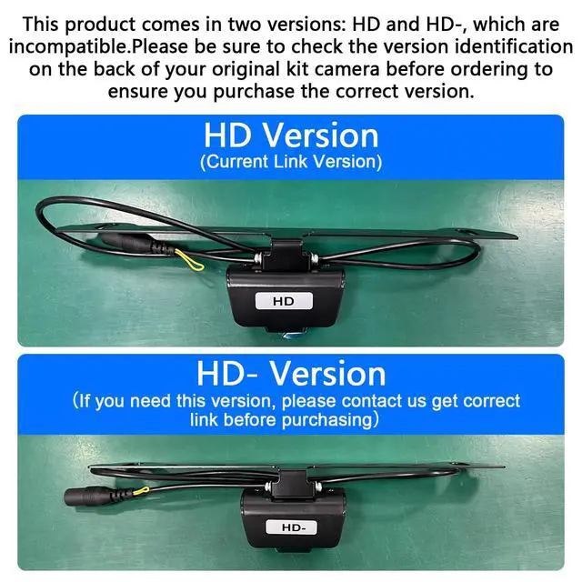 Pre-Purchase Support Attachment: The current link version is 'HD', please check if the version on the back of your original kit camera is 'HD' to ensure a perfect match. If you need 'HD-'version, please contact us. Unsure about which version ('HD' or 'HD-'') you need or dont know how to pair signal ? Please contact us before purchasing.