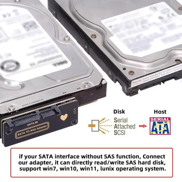 1) This adapter has built-in chip, Can convert SAS disk to the SATA interface of the common motherboard, so SATA computers can also use the SAS disk and no need any SAS raid card. ^^ 2) if your SATA interface without SAS function, Connect our adapter, it can directly read/write SAS hard disk, support win7, win10, win11, lunix operating system. ^^ 3) It is not recommended to connect the USB disk enclosure or cable, The USB master chipset is not adapted, incompatibility may occur. ^^ 4) After conversion, the SMART of the SAS hard disk will display incomplete or no information, but it will not affect normal reading and writing.