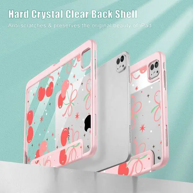 May Chen for iPad Pro 13 Inch Case M5 2025 / M4 2024, Built Pencil Holder & Clear Transparent Print Back Shell Slim Stand Shockproof Tablet Cover, Auto Wake/Sleep, Coquette Cherry