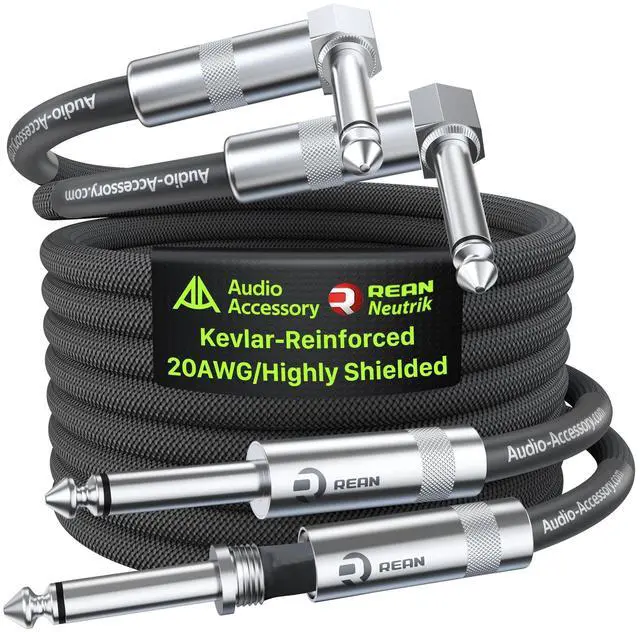 Kevlar-Reinforced Guitar Cable - AA AUDIO ACCESSORY is the first brand to introduce Kevlar into audio cables. It can withstand over 50, 000 bends, 30x higher than other guitar cord 10ft without Kevlar. ^^ Anti-Kinking Nylon Braided Design More durable and flexible than other 90 degree instrument cable, resists abrasion and allows quick coiling after use. ^^ Rean Connectors from Neutrik Trusted name in audio industry. Our right angle guitar cable 20ft uses Neutrik Rean connectors (NYS201), rugged and abuse-resistant for professional performance. ^^ Low Capacitance 99.99 % 20AWG OFC Higher purity and thicker core than 99.95 % 22AWG, this amp cord for electric guitar ensures low signal loss and clear sound.