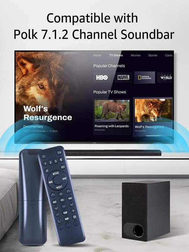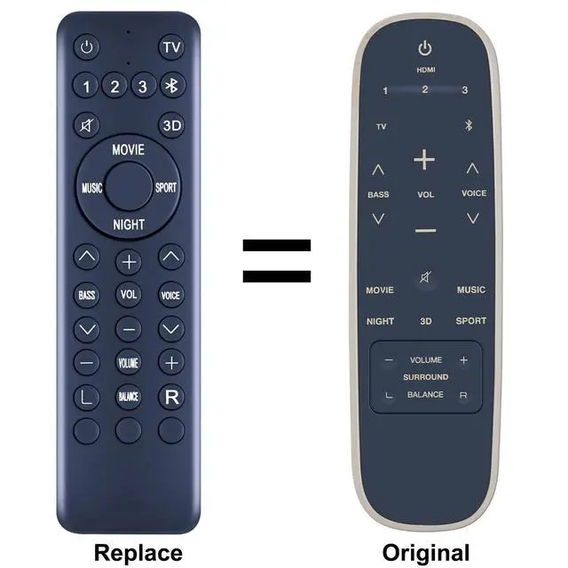 RETROSUN Replacement Remote Control Compatibe with Polk Audio MagniFi 2 MagniFi Max AX SR 7.1. 2 Channel Sound Bar. ^^ This is a replacement remote. While the button layout may not be exactly the same as the OEM soundbar remote, it does have all the same functions as the original remote. Make sure your old remote looks like the one in the first main image (the one on the right). ^^ Incorporates infrared 3.0 technology. No programming or pairing required. Simply install in 2pcs AAA akaline batteries and it is all good to go.