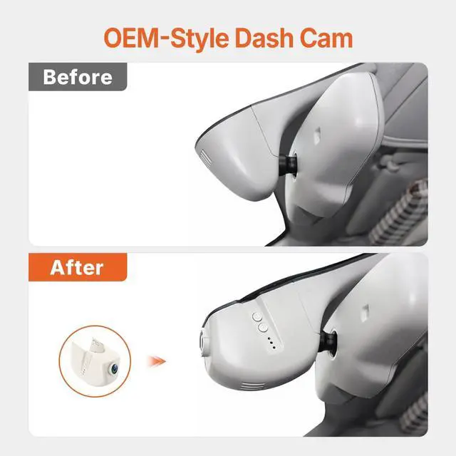 OEM Style Fit for AudiEngineered specifically for Audi models, this OEM-style dash cam integrates seamlessly into the factory overhead console for a true factory-installed appearance. No suction cups, no adhesive mounts, and no aftermarket hardwaredesigned to match Audis clean, modern interior from day one. ^^ Clear Windshield, Distraction FreeThis Audi dash cam installs discreetly within the headliner, keeping your windshield completely unobstructed. With no visible wire or bulky mounts, it preserves forward visibility while maintaining the refined, minimalist interior aesthetics Audi owners expect. ^^ Protect Your Investment with Undeniable 4K HDR ClarityCapture true 4K video through a 150 wide-angle lens, delivering balanced road coverage across multiple lanes.