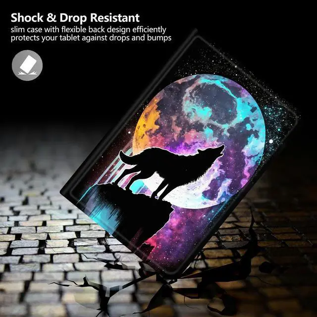 DIGTIALL Case for 10.1" Fire HD 10 Tablet (13th Generation,2023 Release),Slim PU Leather Folding Stand Protive Cover with Auto Wake/Sleep for Kindle Fire HD 10 Tablet 2023,Moon Wolf