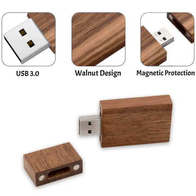 Shell Design: The wood usb flash drive 32gb is made of natural walnut wood, every single usb stick has its unique grain. The wood usb thumb drive has a magnetic closure to keep the cover well closed to protect from dust and moisture ^^ Plug and