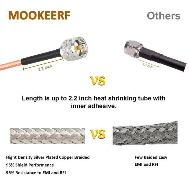 • Stronger Connection -- The length of heat shrink tube that connect the rg316 cable and uhf pl259 male connector is upgraded to 2.2",which can better protect the connector from falling off.