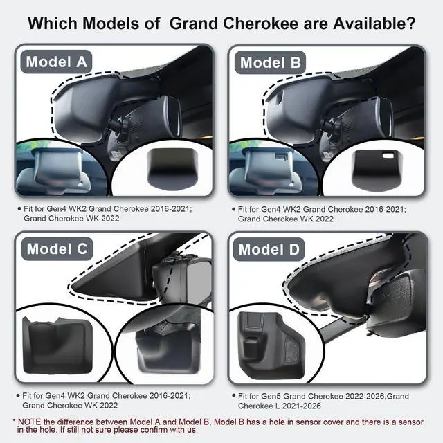 PlEASE CHECK YOUR MODEL CAREFULLYRecently, some buyers have chosen the wrong Model, and original view mirror cover does &. Seriously compare THE SECOND PICTURE and THE THIRD PICTURE of Product Description. If you are still not sure which model is suitable for your vehicle style, Please take a photo of your original car sensor cover and send it to us, and we will confirm it for you. ^^ Custom fit for 4th Gen. Grand Cherokee 2016-2021Mangoal 4k dash cam can fit perfectly behind the rear view mirror like original. No messy wiring exposed, no complicated rewire at all.