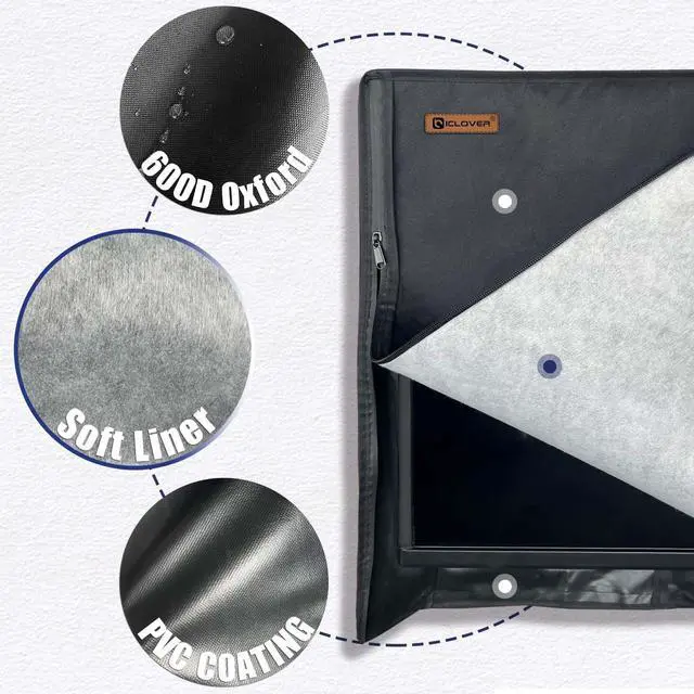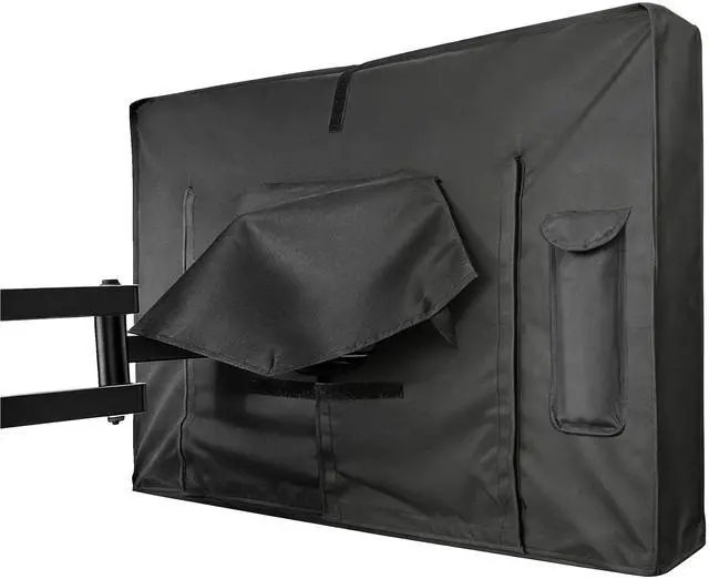 OXFORD FABRIC: The outside TV cover crafted from premium 600D oxford fabric. It effectively shields your TV frame from aging and provides protection against water, pollen, dust and moisture. Ensures television is safe from any potential water damage, even during rainy or humid conditions. It won't be faded after exposure to the sun and provide year-round protection for your television in 4 seasons. ^^