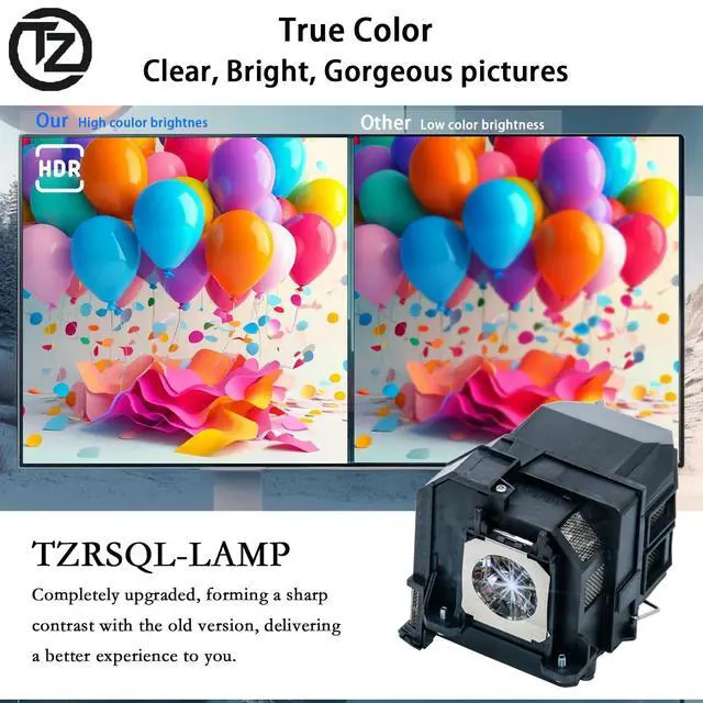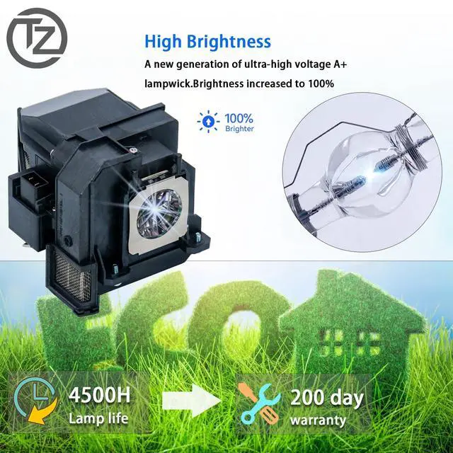 Compatible modelFit for EPSON ELPLP90/V13H010L90 EB-670 EB-675W EB-675Wi PowerLite 675W EB670 EB675W EB675Wi 675W projector ^^ This replacement projection bulb comes with Housing. It is very easy to install and everyone can do it. ^^ Complete Renewal, Brighter Upgrade, Long-lasting Durability A Brand New Experience, Beyond the Past ^^ Ensure full compatibility, high-brightness and clear image output. The lifespan is 4500 hours, and the ECO mode has a longer lifespan. ^^ We offer a 200-day free replacement and a 30-day refund guarantee service. We always provide customers with better services.