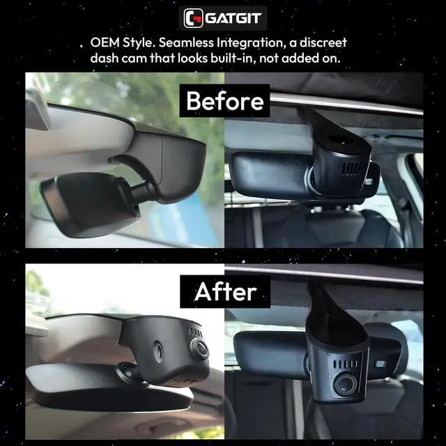 OEM-style for Audi 2019-2026This GATGIT Audi dash cam maintains your vehicle's factory-style aesthetic, No wiring is requiredsimply plug directly into your vehicle's original connectorwith no bulky suction cups, no messy adhesives, and no tangled wires. It is tailor-made for Audi 2019-2026 A4 A6 Allroad A3 A5 Q5 S4 S6 Q7 A8 S8 TT A7 S5 Q3 S3 S7 RS3 RS5 RS6 e-tron models and does not obstruct your view after