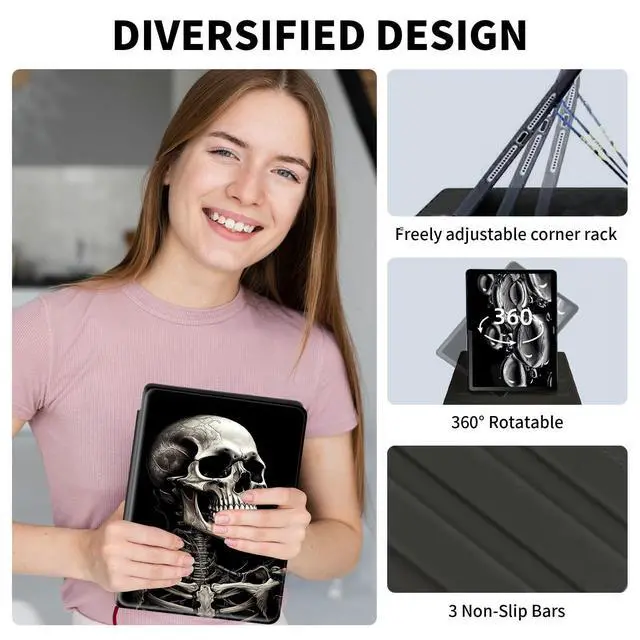 Adjustable Angle: 360 degree rotation stand tablet case can rotate both Horizontal and vertical modes flexibly, built-in 3 anti-slip strips support adjustable angle for video watching, chatting and easy typing ^^