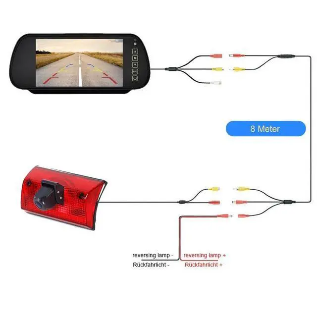 Working temperature: -40~ 70/ -40~ 158Package Contents1 x Car Rear view Camera1 x7 inch Mirror1 x Power Cable ( 1.5 m)1 x AV Cable (8m) 1 x User Manual