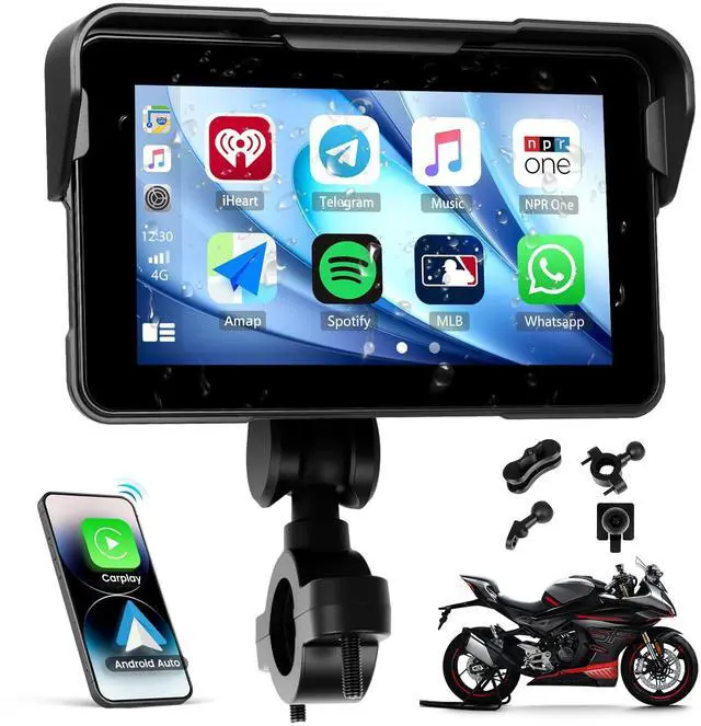 Compatible with Almost MotorcycleThis Apple car play screen suitable for all motorcycles, and comes with bracket kits and tools, you can choose a bracket that suits your motorcycle, mount it on the Motorbike handle , the mount guards against drops and vibration. NOTE: Not perfectly compatible with Samsung Note as well as S series. Before purchasing, please make sure your phone supports wireless carplay / wireless android auto.