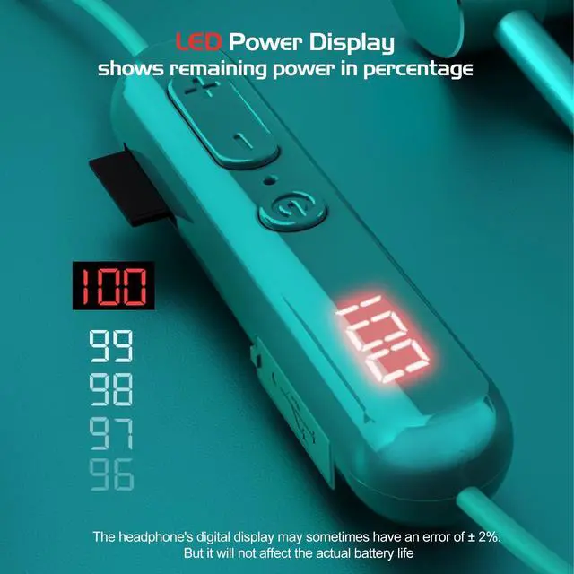 ^^ Digital Display: X9i Bluetooth headphones with digital display shows remaining power in percentage. You can easily know the battery consumption on bluetooth earphone so you can master the suitable time to charge it. ^^ Foldable Neckband &
