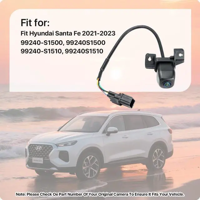 OE part numbers: 99240-S1500, 99240S1500, 99240-S1510, 99240S1510 ^^ Star Night Vision Hyundai Santa Fe Rear Camera---Experience superior visual clarity day or night with our advanced camera system. Delicate and high-definition images ensure enhanced safety and convenience, providing a superior visual experience in all lighting conditions ^^ IP68 Waterproof Hyundai Santa Fe 2021 2022 2023 OE Camera---Built to endure diverse conditions, our camera ensures reliable performance regardless of weather. Whether you're washing the car or navigating heavy rain, rest assured it won't compromise. Crafted with a robust metal housing, it guarantees strength, toughness, high-temperature resistance, sturdiness, durability, wear resistance, and non-deformation, ensuring reliability in any environment ^^ Easy Installation---GreenYi OE 99240-S1510 camera is engineered for seamless integration, serving as a direct replacement for the original backup camera part while supporting coding with the original features. With a plug-and-play mechanism, complex wiring is unnecessary. For added convenience, you can refer to YouTube videos for step-by-step guidance