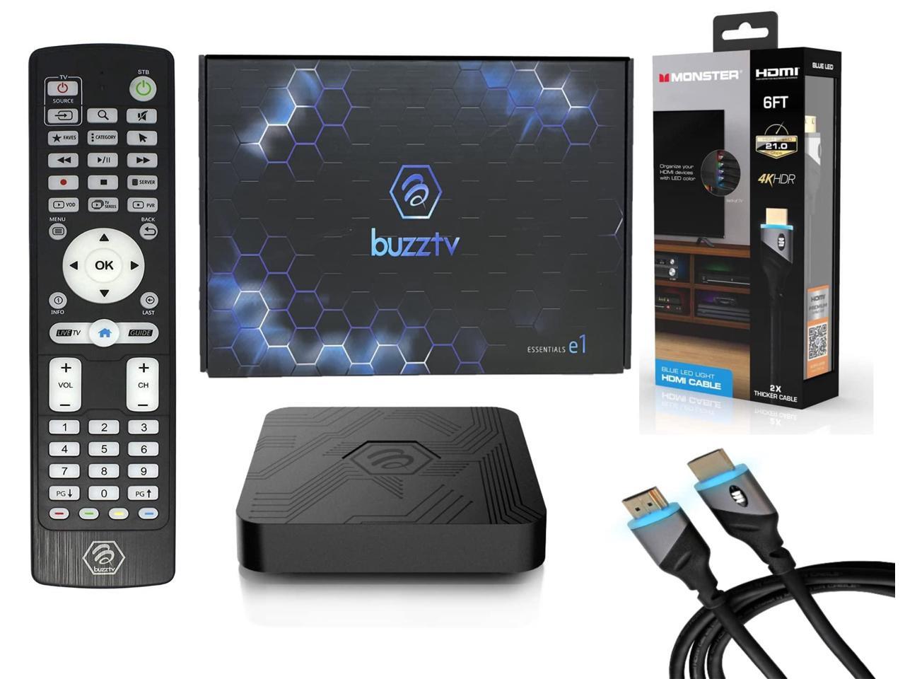 BuzzTV Essentials E1-2GB RAM 8GB Storage - Latest Graphics Processor - Dual Band WiFi with Bonus Monster HDMI Cable 4K HDR 6ft / 1.8m. Ultra Fast and Easy to use