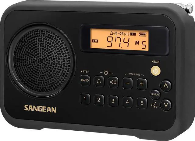 Sangean's new SG-104 AM/FM Portable Digital Radio with fully functioning alarm clock capability and a protective bumper brings a new meaning to the word versatile! While it is a perfect companion at a picnic, a ball game or at a camping trip, it can take all the bangs and scraps those fun adventures can bring and it also looks great while doing it! It comes in four different color combinations to suit everybody's taste and personality and is a true portable AM/FM Digital radio being ultra-compact in size only a mere 6.54" long, standing 4.26" tall and weighing a feathery 12.5 oz's! All controls are conveniently located and you can see the frequency and time on the display.