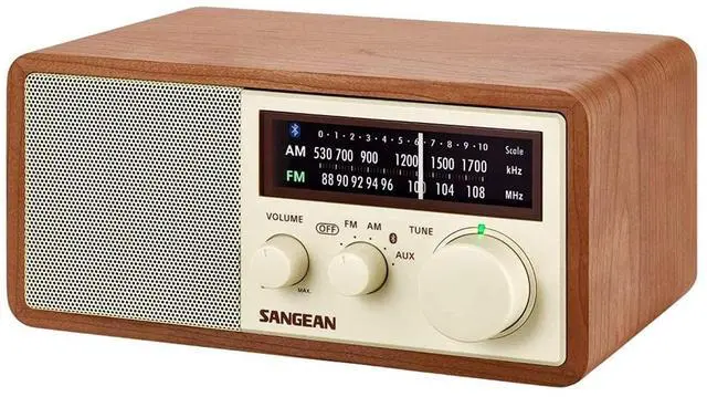 The Sangean WR-16 AM/FM Bluetooth Wooden Cabinet Radio combines elegant simplicity with state-of-the-art performance. Built-in Bluetooth version 4.1 Class II and NFC technology allows for simple pairing and connecting to your Bluetooth-enabled device. An aux input allows you to connect this AM/FM radio to MP3 players and other non-Bluetooth devices.