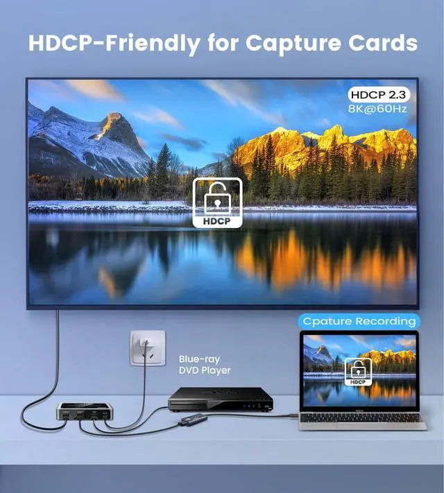Wide Compatibility: Supports HDMI 2.1, HDCP 2.3. Work with all HDMI devicesBlu-ray/DVD players, satellite box, Apple TV, PS5, PC, game capture device. Support wired headphone/speaker/soundbar/amplifier, etc. Ensuring smooth connection for everyday use ^^ Plug and