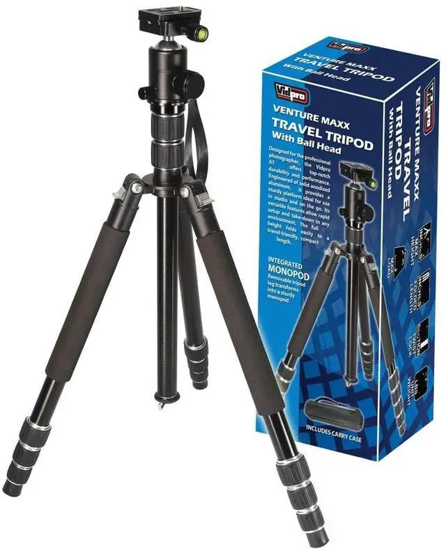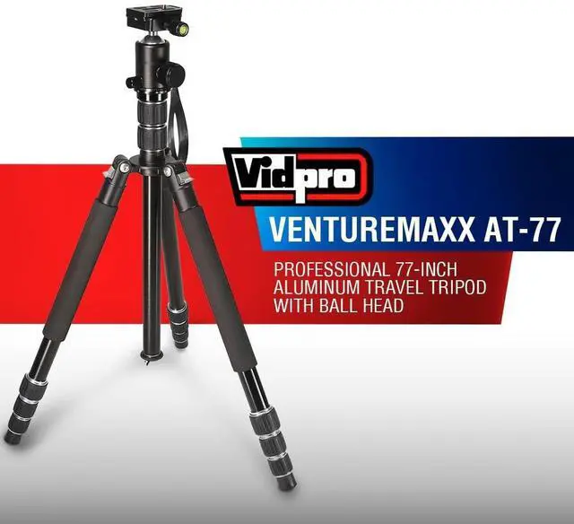 ^^ High-Quality Design: Offering top-notch durability and performance, the Vidpro VentureMaxx AT-77 Professional 77-Inch Travel Tripod is engineered of solid anodized aluminum to provide a sturdy platform whether youre using it in the studio or on the go.