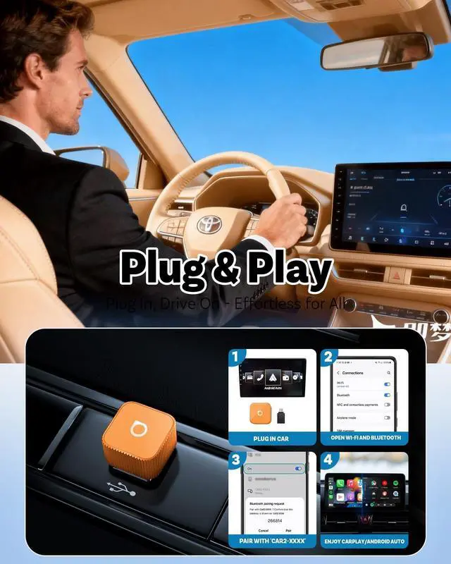 Setup is a breeze: just plug it into your USB-C or A port, pair via Bluetooth, and forget it. This Android Auto adapter bridges the gap between your phone (iPhone iOS 10+ or Android 11+) and your vehicle instantly. No complicated apps, just pure, seamless magic.