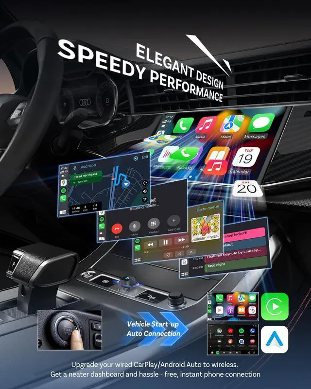 Wireless Freedom for Every DriveUpgrade your factory wired system to wireless instantly with Ottocast Mini Slim 3.0 wireless CarPlay / Android Auto adapter. This ottocast wireless carplay adapter 2025 eliminates cables and clutter, giving you seamless access to navigation, calls, messages, and music the moment you start the engine. Perfect for busy parents on school runs, daily commuters, or road-trip lovers who want a cleaner, smarter car interior. ^^ Fast & Stable Connection with Next-Gen ChipPowered by 5GHz WiFi + Bluetooth 4.2 + upgraded 2026 chipset, the ottocast mini 3.0 connects in as fast as 10 seconds and auto-reconnects in 5 seconds.