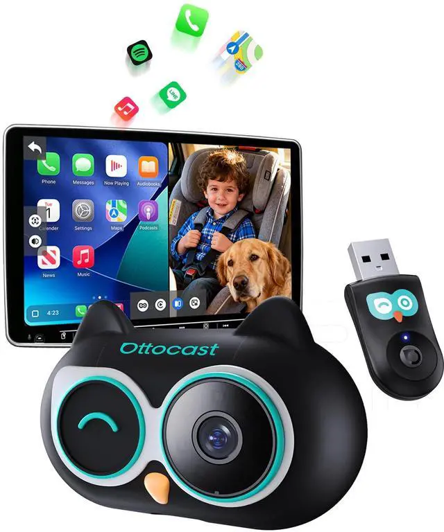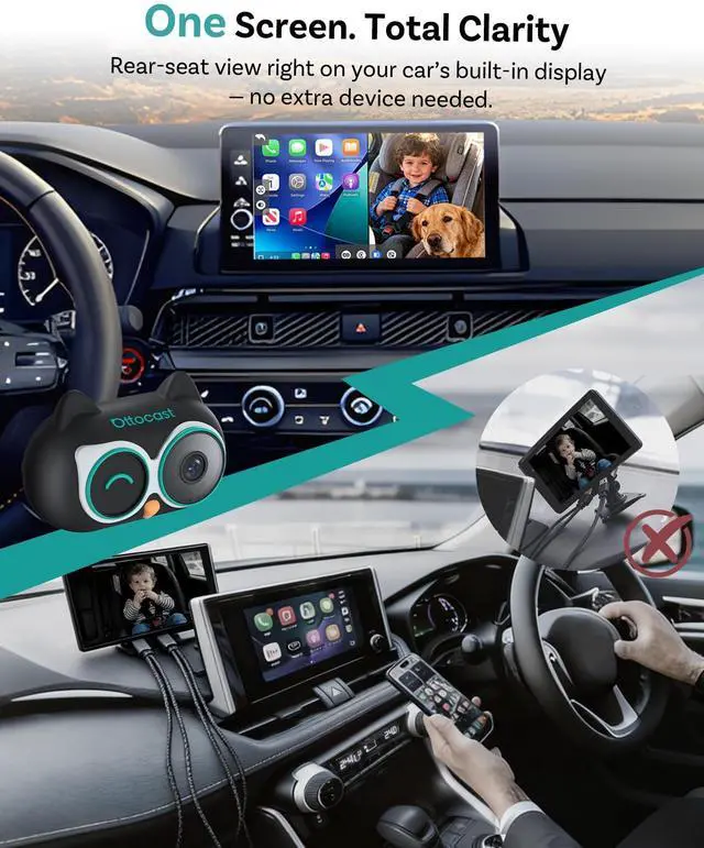 Night: The OTTOCAST camera owl captures a 150 field of view with true 1080P clarity and no infrared glow, ideal for sleeping infants, toddlers or pets. Even at night, the car screen provides a bright, natural image so you can check the back without turning around, keeping attention on the road. ^^ Split