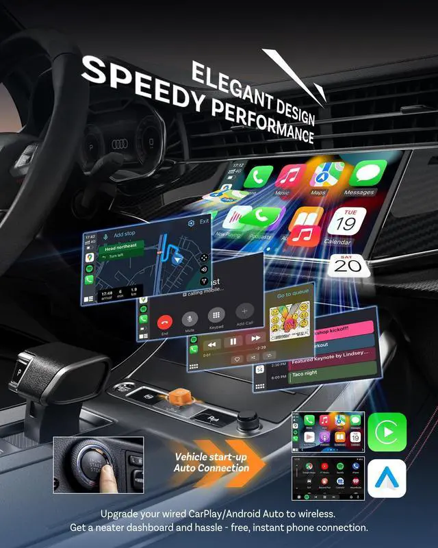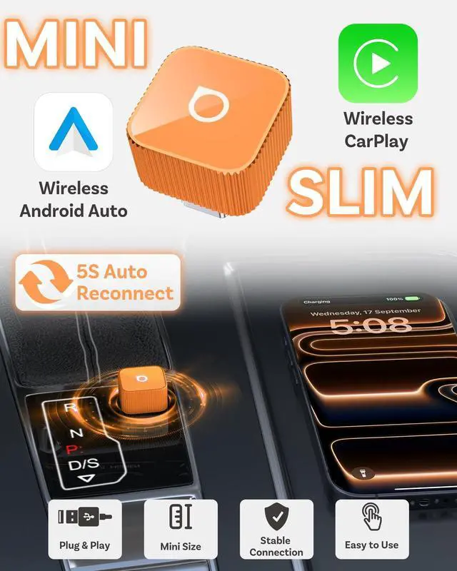 Turn Factory Wired CarPlay Into WirelessThis wireless CarPlay adapter is designed only for vehicles with factory wired CarPlay. Simply plug it in to enjoy automatic wireless CarPlay every time you start your car. ^^ Works with iPhone & Android AutoSupports wireless Apple CarPlay and Android Auto, allowing you to connect your phone without cables while keeping all original CarPlay features.