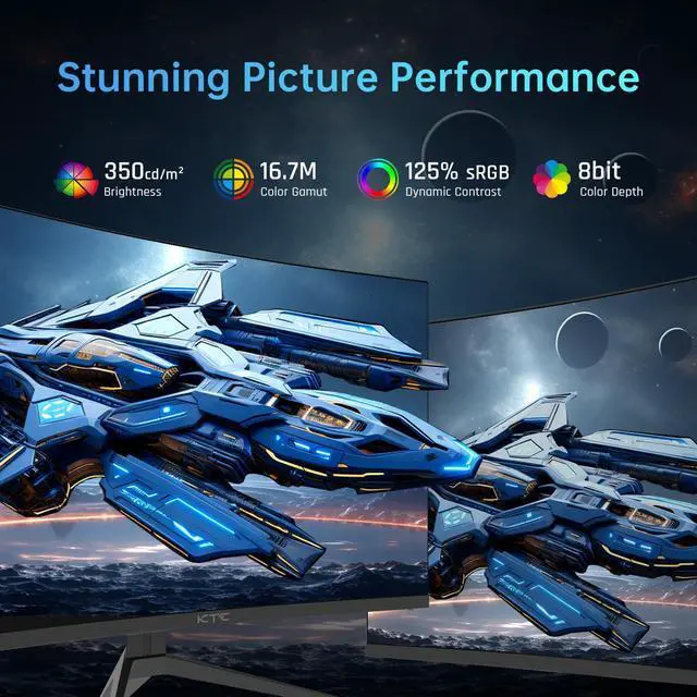 Vivid Visuals for Enhanced Viewing:The KTC 32" curved gaming monitor Boasting a FHD(1920x1080P)resolution and THE 240hz monitor displays 125% SRGB color gamut and 16.7 million display colors. It also features a remarkable contrast ratio of 3500:1, providing exceptionally clear and distinct images.
