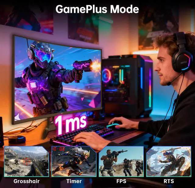 185Hz Refresh Rate: 180Hz refresh rate can be overclocked to 185Hz (via DP). 1ms MPRT response time, whether it is fast-moving action scenes or intense screen transitions, bringing an excellent gaming experience.