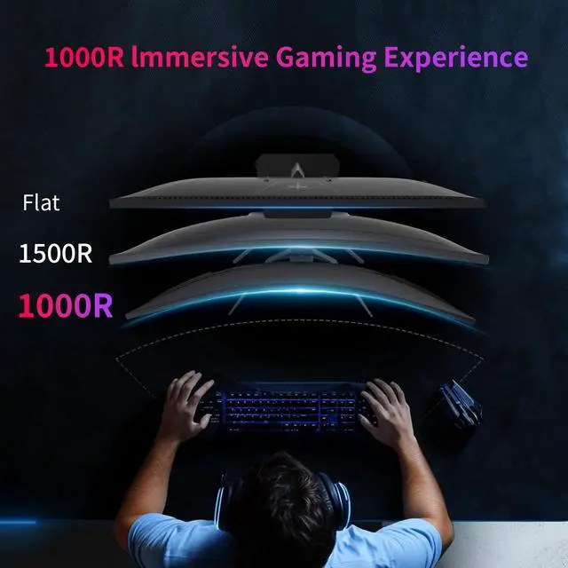 [More Immersive 1000R Curved Screen] The 1000R Curved Gaming Monitor is a cutting-edge display designed to enhance your gaming experience by featuring a curvature radius of 1000 millimeters. Tighter than 1500R, the curvature closely mimics the natural shape of your eyes, helping to reduce distortion and providing a wider field of view.